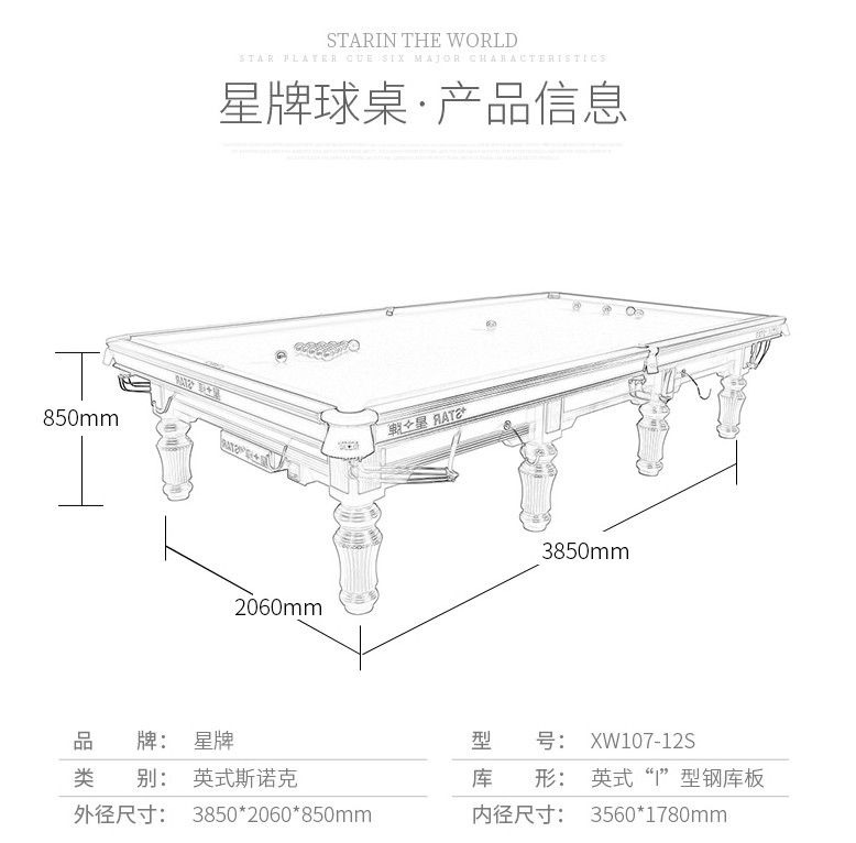 星牌 XW107-12S 英式斯諾克臺(tái)球桌