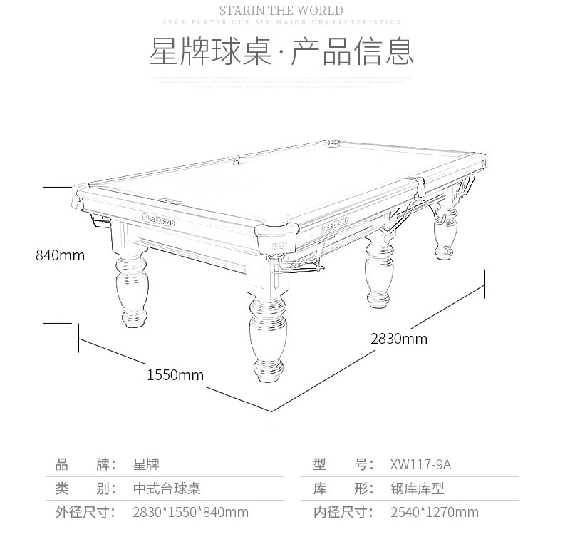 星牌 XW117-9A 美式臺球桌