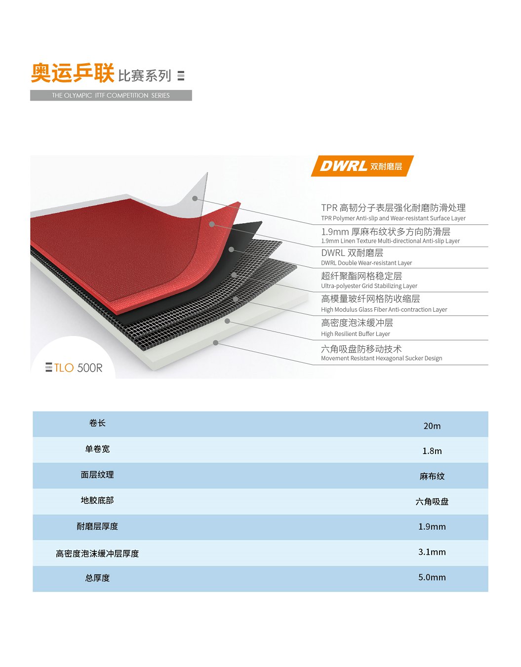 天速乒乓球地膠TLO 500R寶石紅